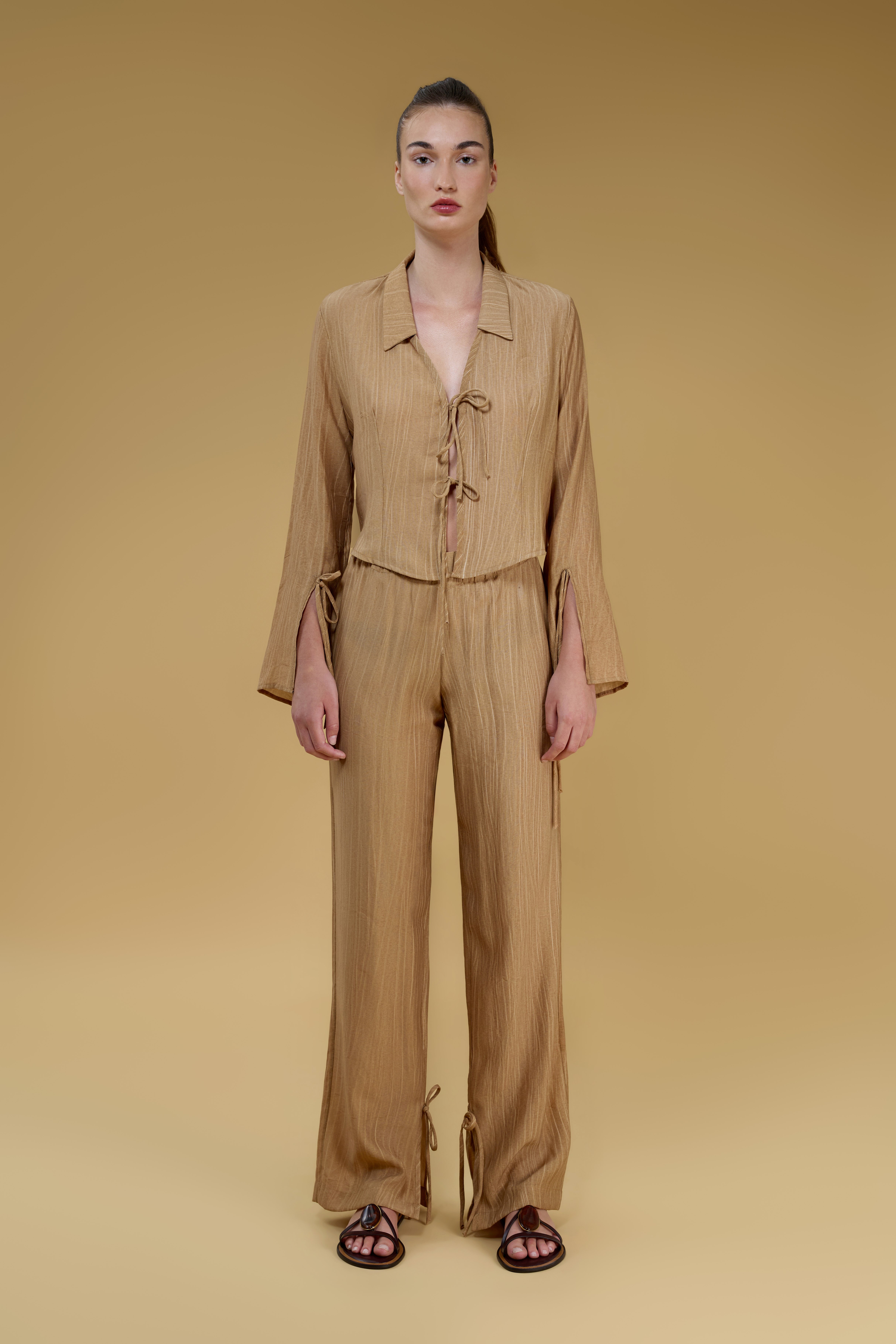Lightweight and effortlessly refined, the Como Tie Front V Neck Long Sleeve Shirt is designed with a soft drape and subtle texture. Featuring a flattering V-neckline and delicate tie-front detail, it offers a relaxed yet polished look—perfect for both daytime ease and evening styling.