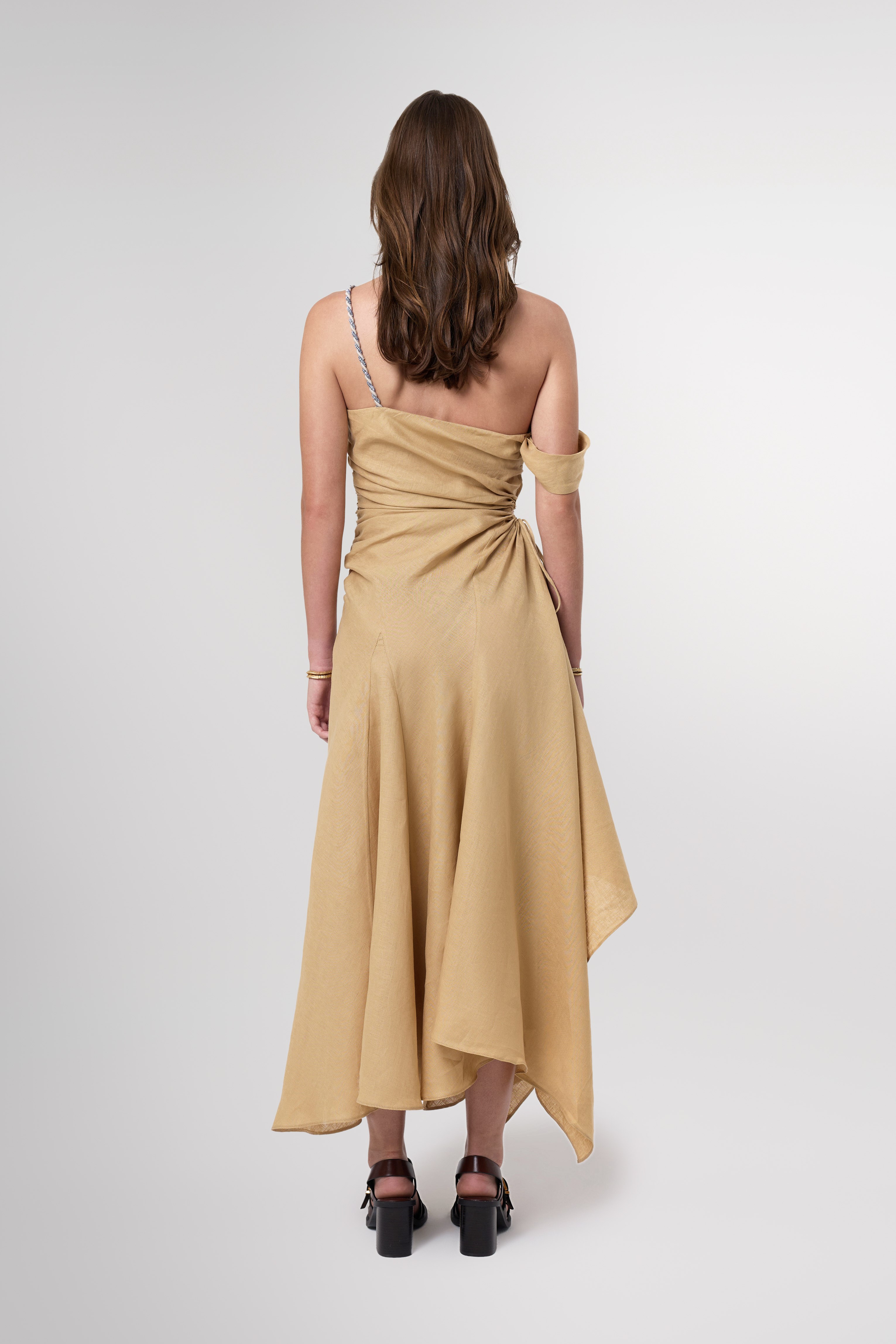 Elegant and effortless, the Mare Off Shoulder Gathered Waist Maxi Dress is crafted from 100% linen for a light, breathable feel. The off-shoulder design, gathered waist, and subtle side cut-out create a flattering, modern silhouette.